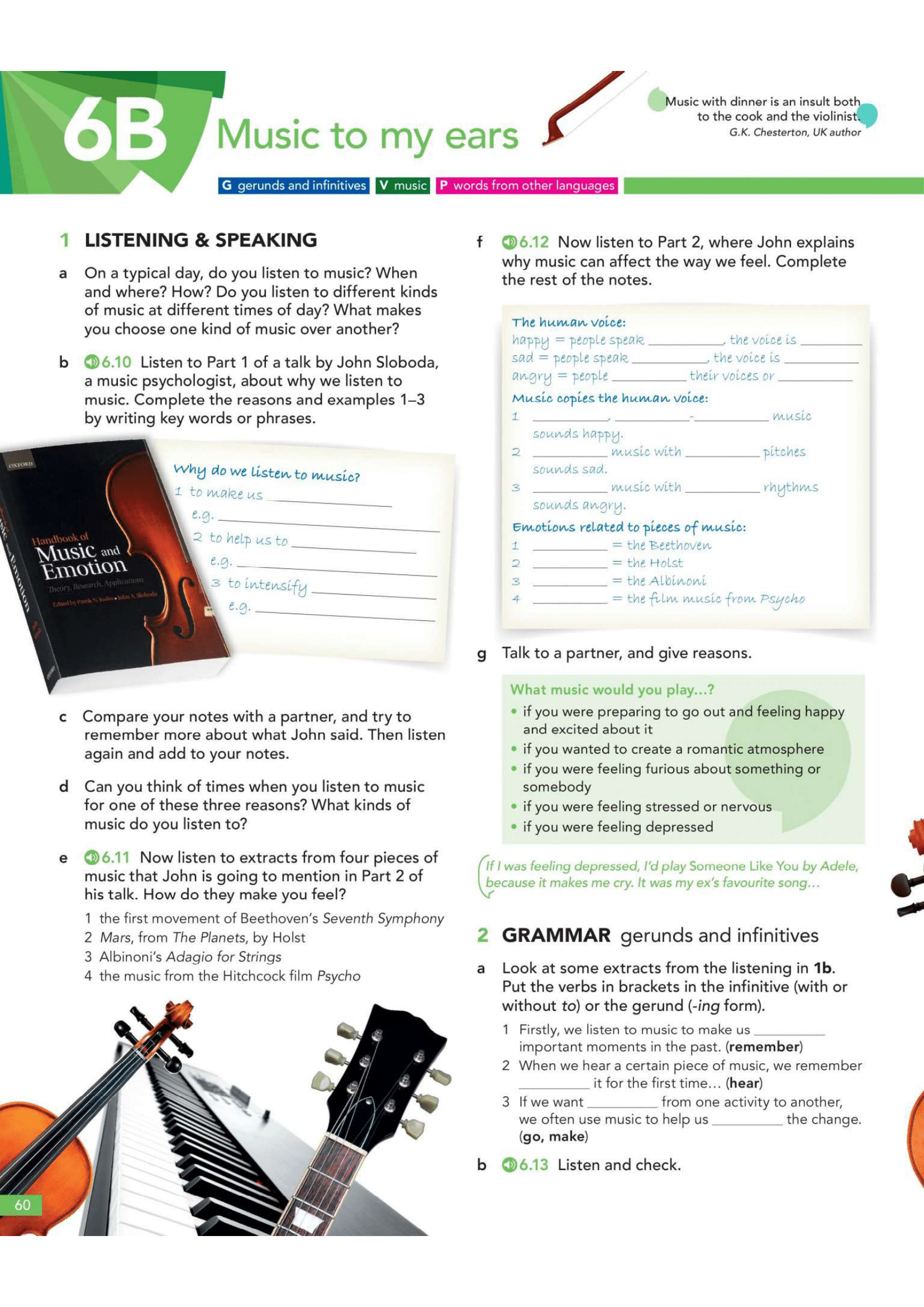 Most of the time you will be teaching from a text book such as English File or Cutting Edge. Each unit typically has a topic or theme, such as ‘Music and Emotion’ in this English File Upper-intermediate level unit. The aim when introducing a topic is to stimulate interest and curiosity which will help them feel ready for learning (from the text book).